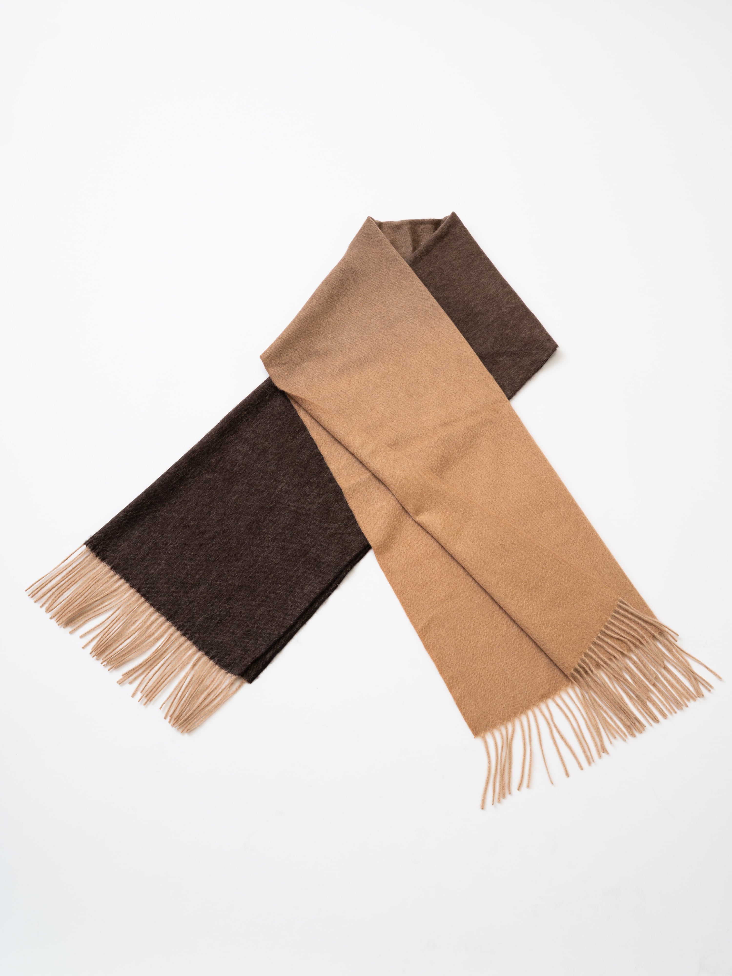 かすり染めのカシミヤ100%の糸を使い、3色のシックな色合いで丁寧に織り上げられたストールです。幅60cmのため、コートやジャケットのインナーとしてもご使用いただける万能なサイズ感が魅力です。ヘーゼルベージュは、柔らかな光をまとったような温もりあるトーン。両端に広がる深みのあるテイストが、洗練された印象を演出します。