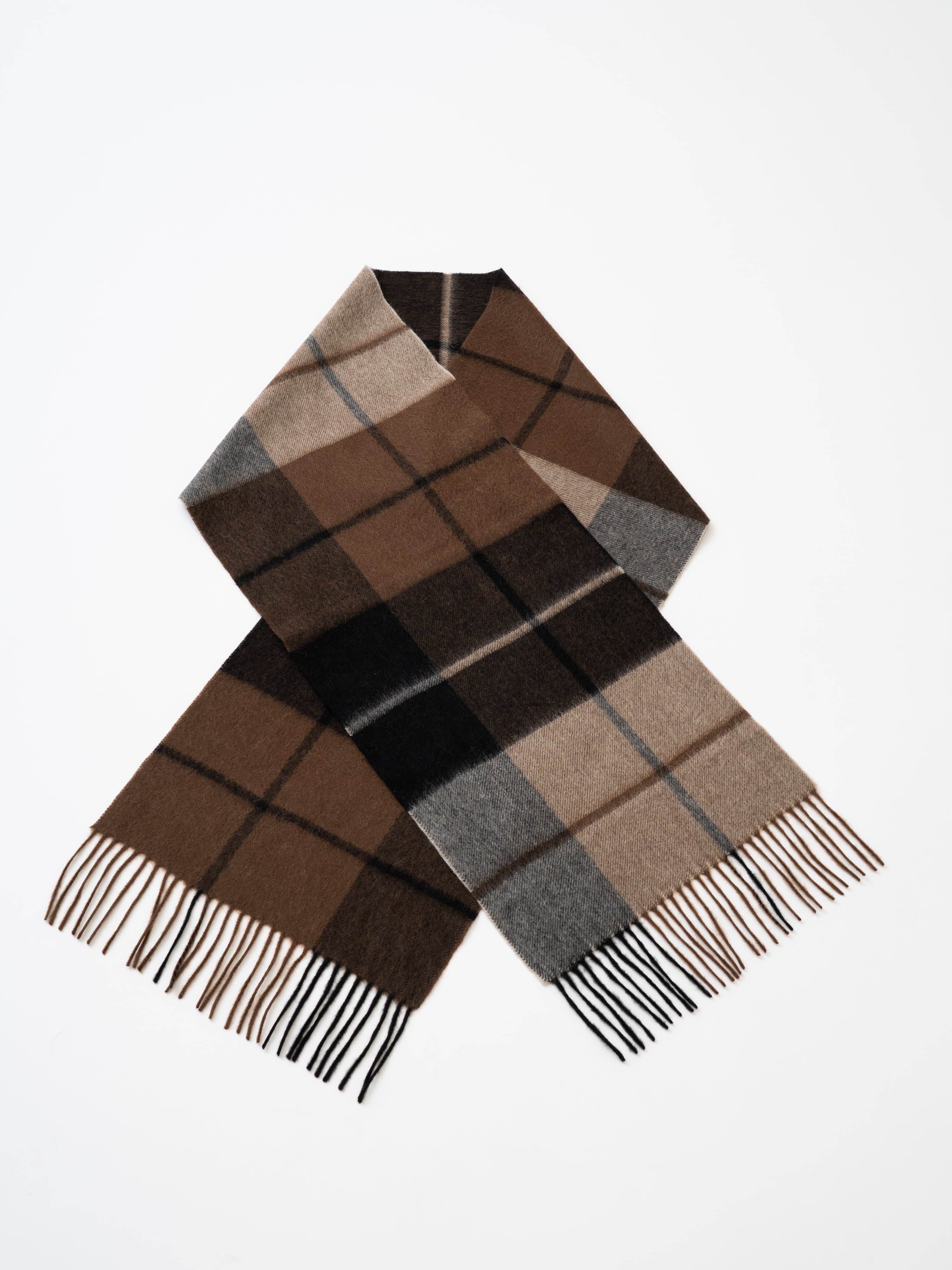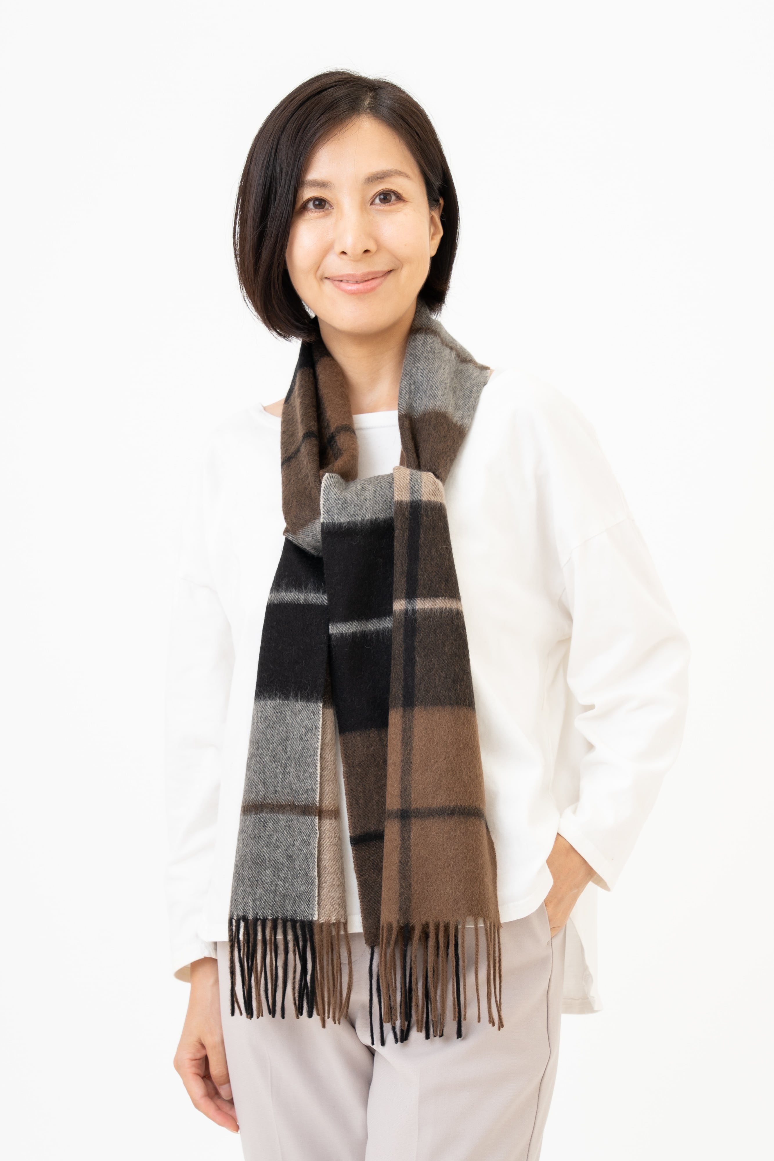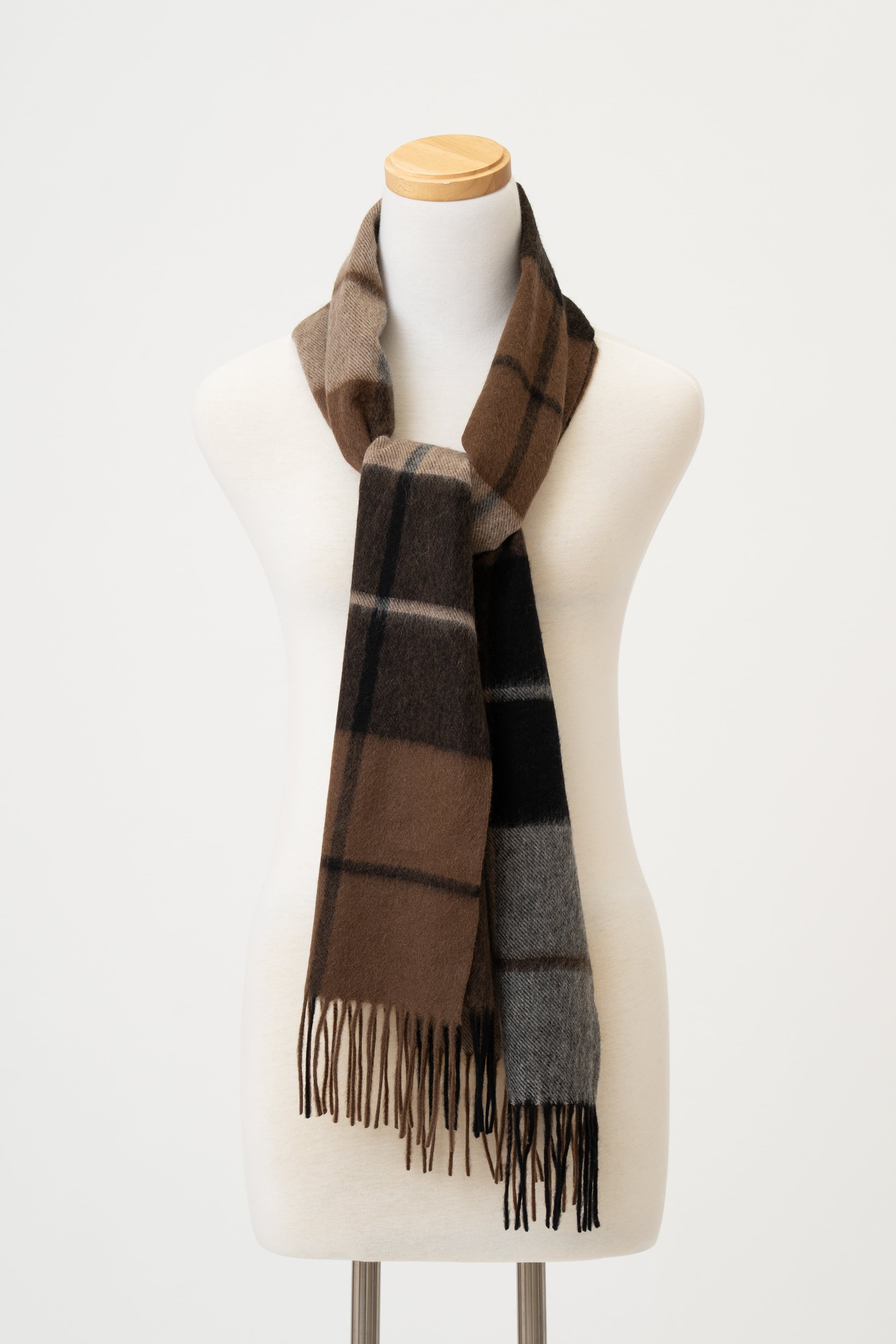 Shirakawa - シラカワ/ブラウン チェック柄マフラーカシミヤ100% 幅30cm×縦164cm(本体部分)+8cm×2(房部分)