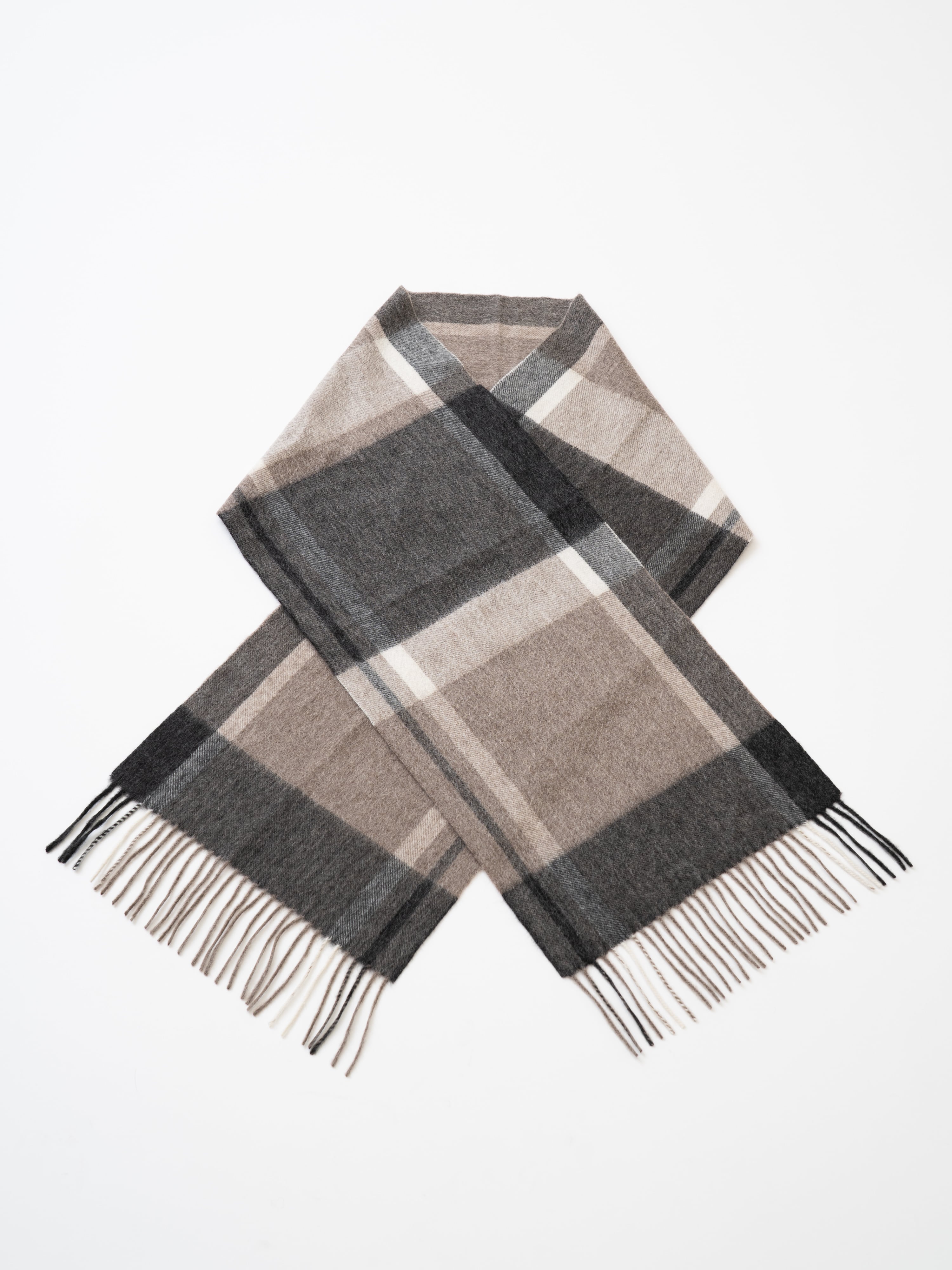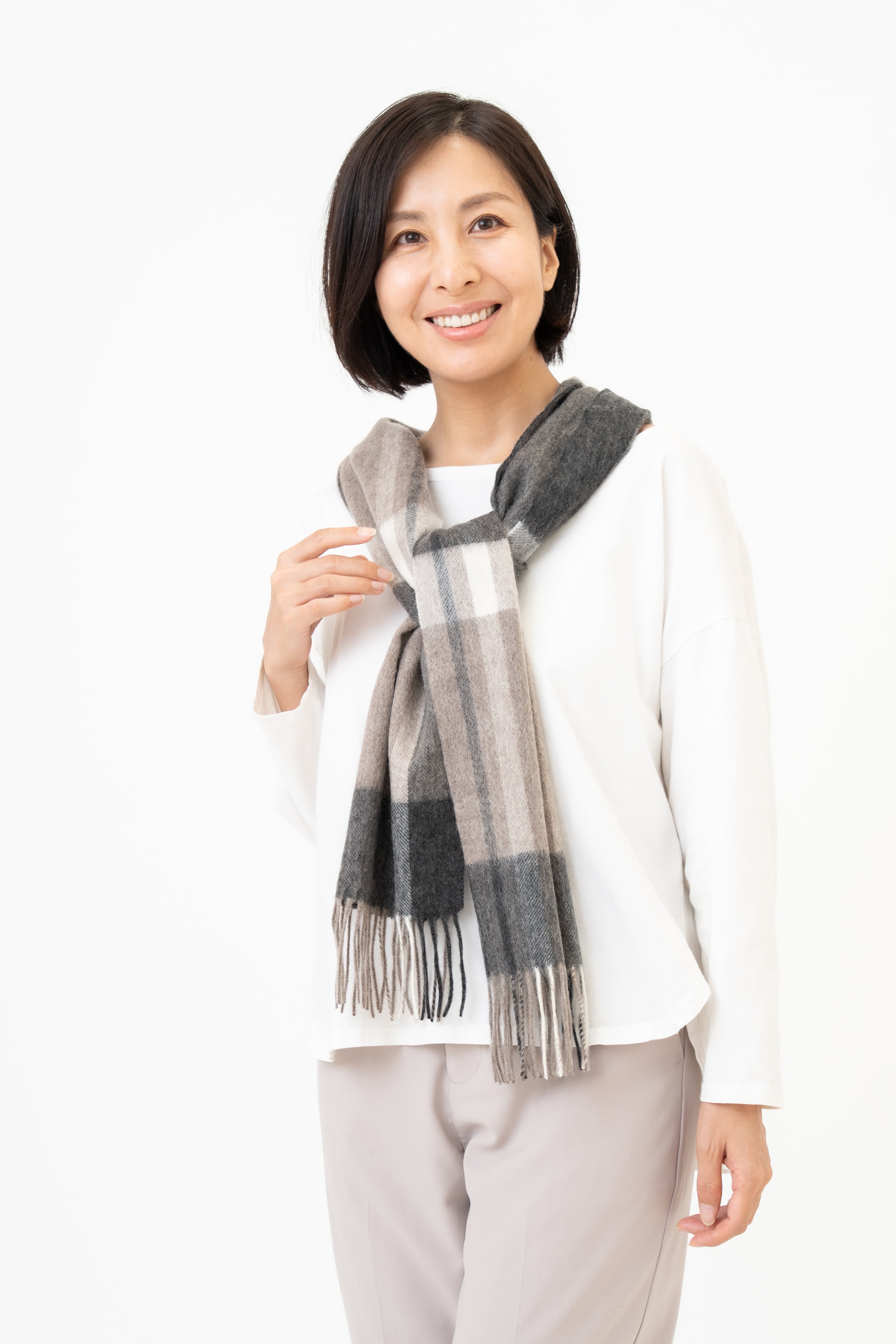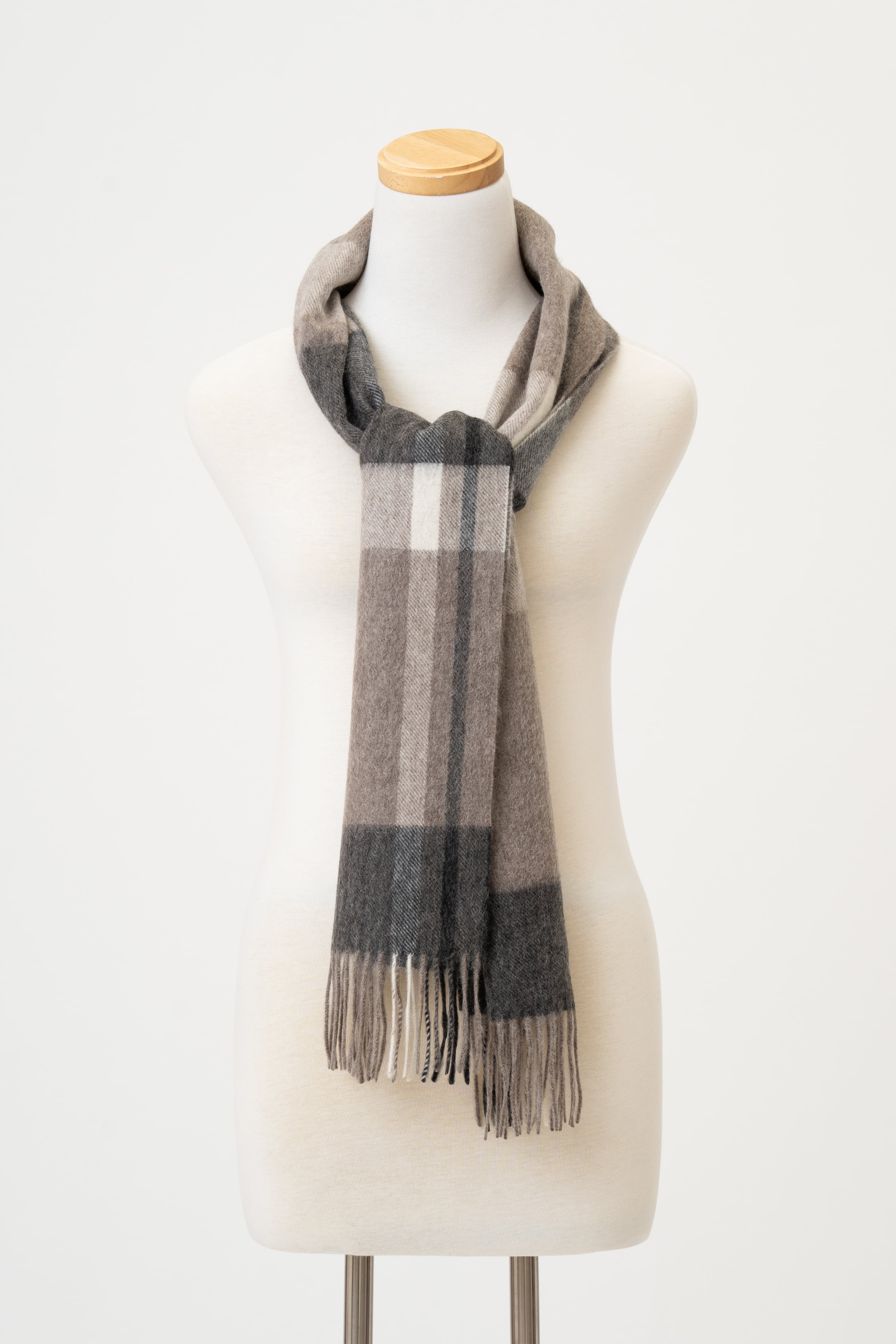 入荷未定 Shirakawa - シラカワ/グレー チェック柄マフラーカシミヤ100% 幅30cm×縦164cm(本体部分)+8cm×2(房部分)