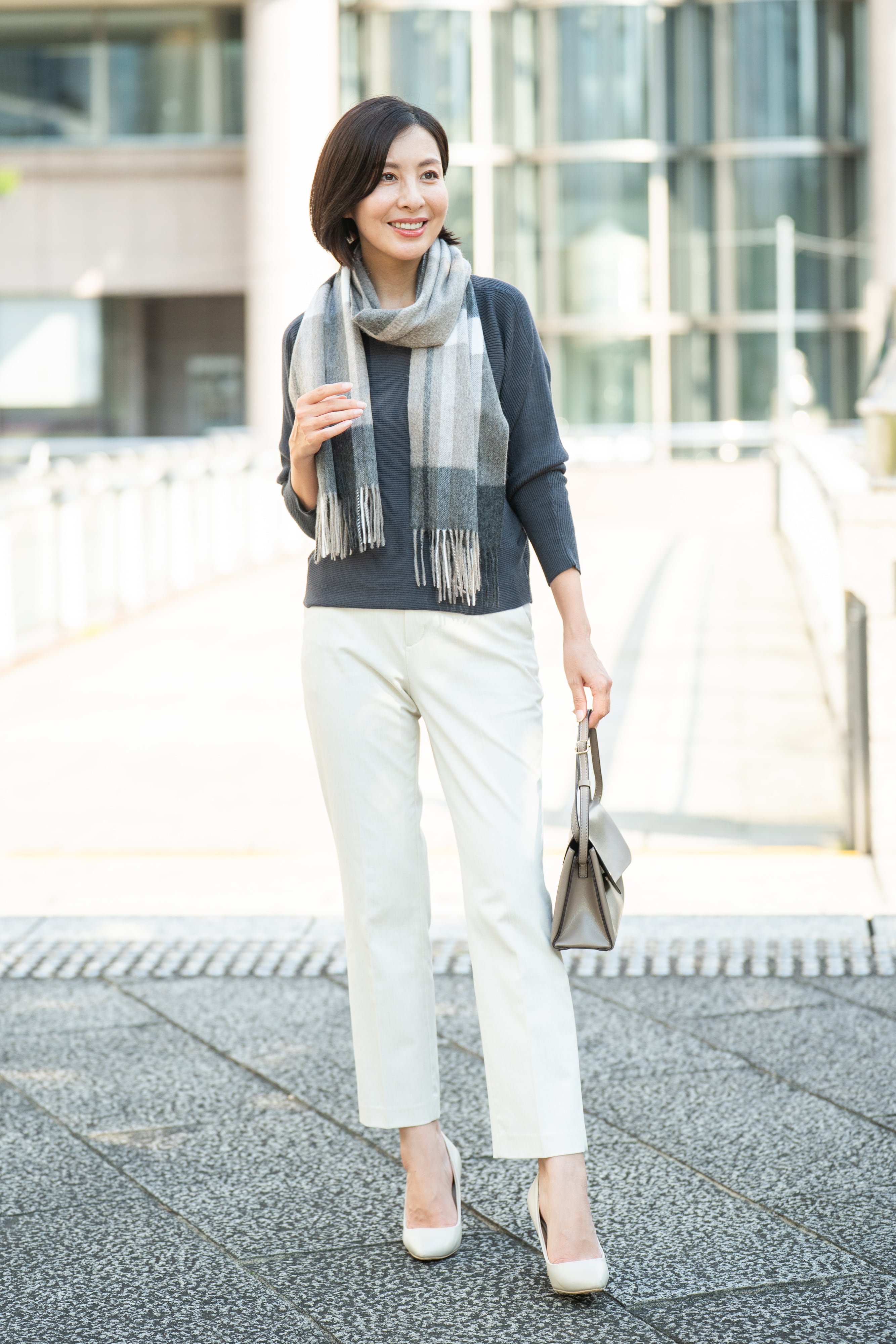どんな色のアウターにも馴染みやすく、穏やかで知的な雰囲気を漂わせます。