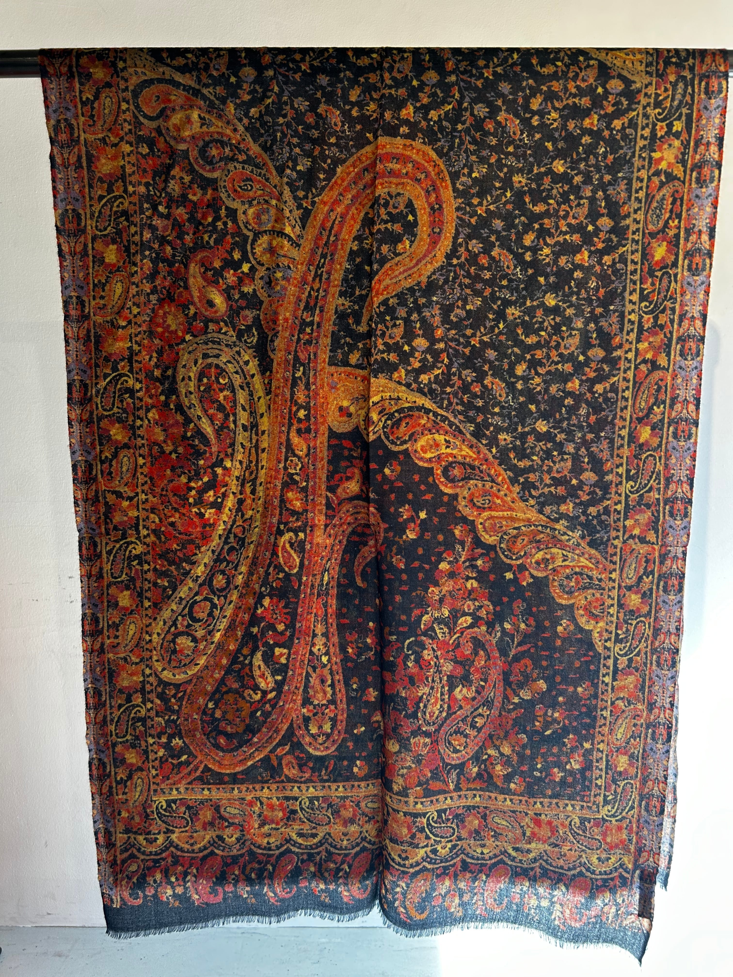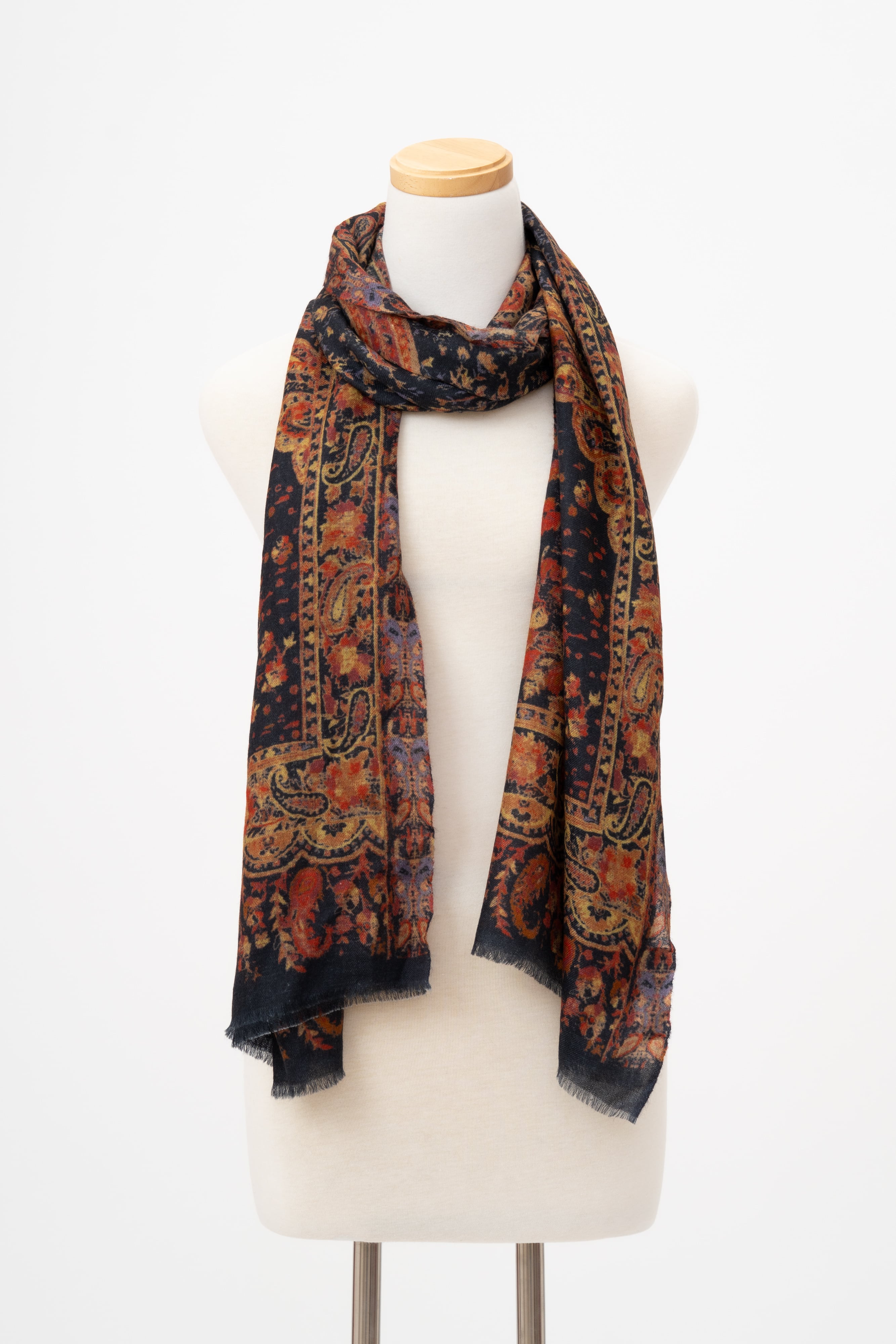 Higashiyama - ヒガシヤマ/ブラック カシミヤ100%プリントストール 幅70cm×縦200cm