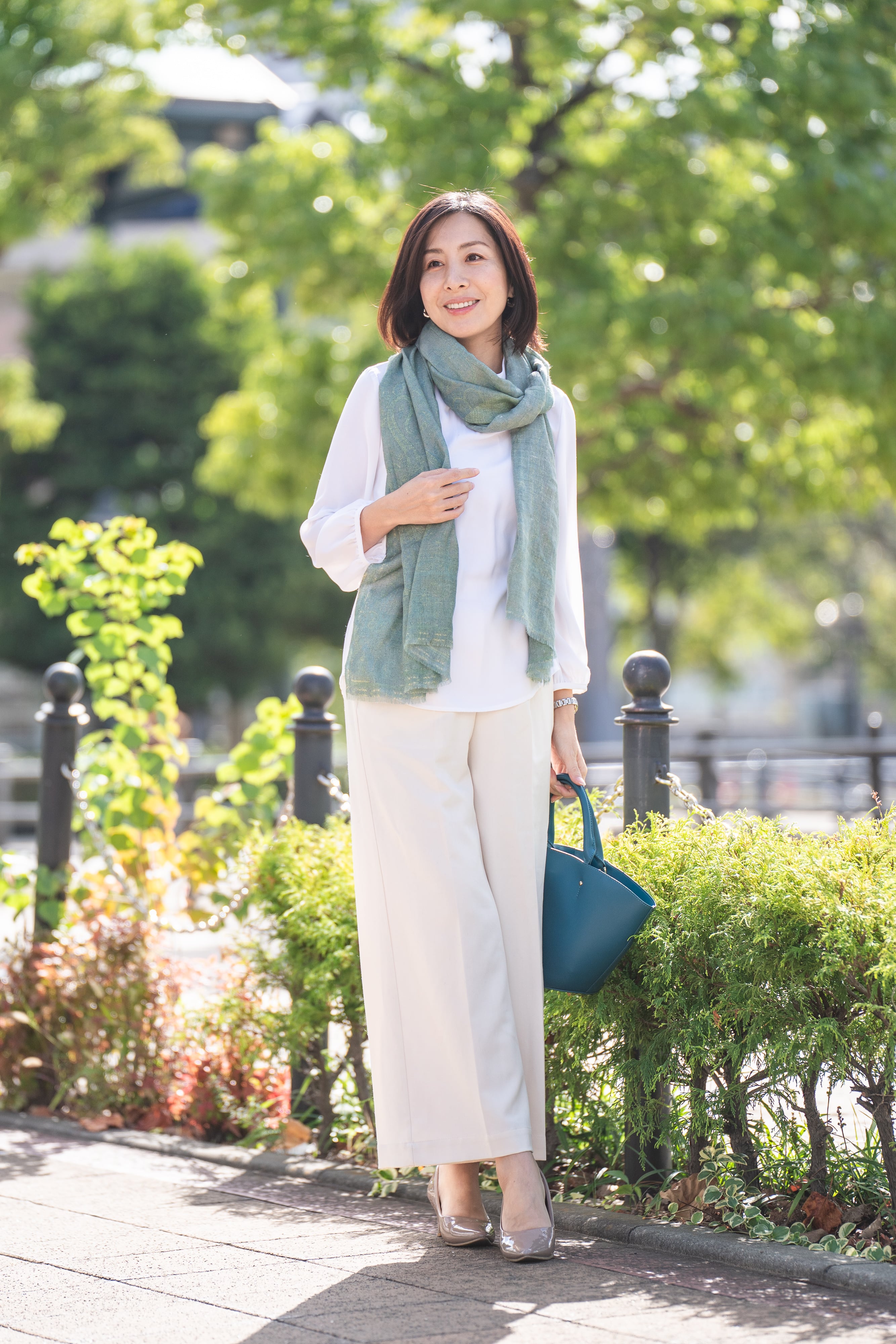 ※透明感のあるグリーンは、清らかな水や爽やかな風を思わせる色。コーデにひとさじプラスするだけで、ナチュラルで都会的な抜け感を演出します。
