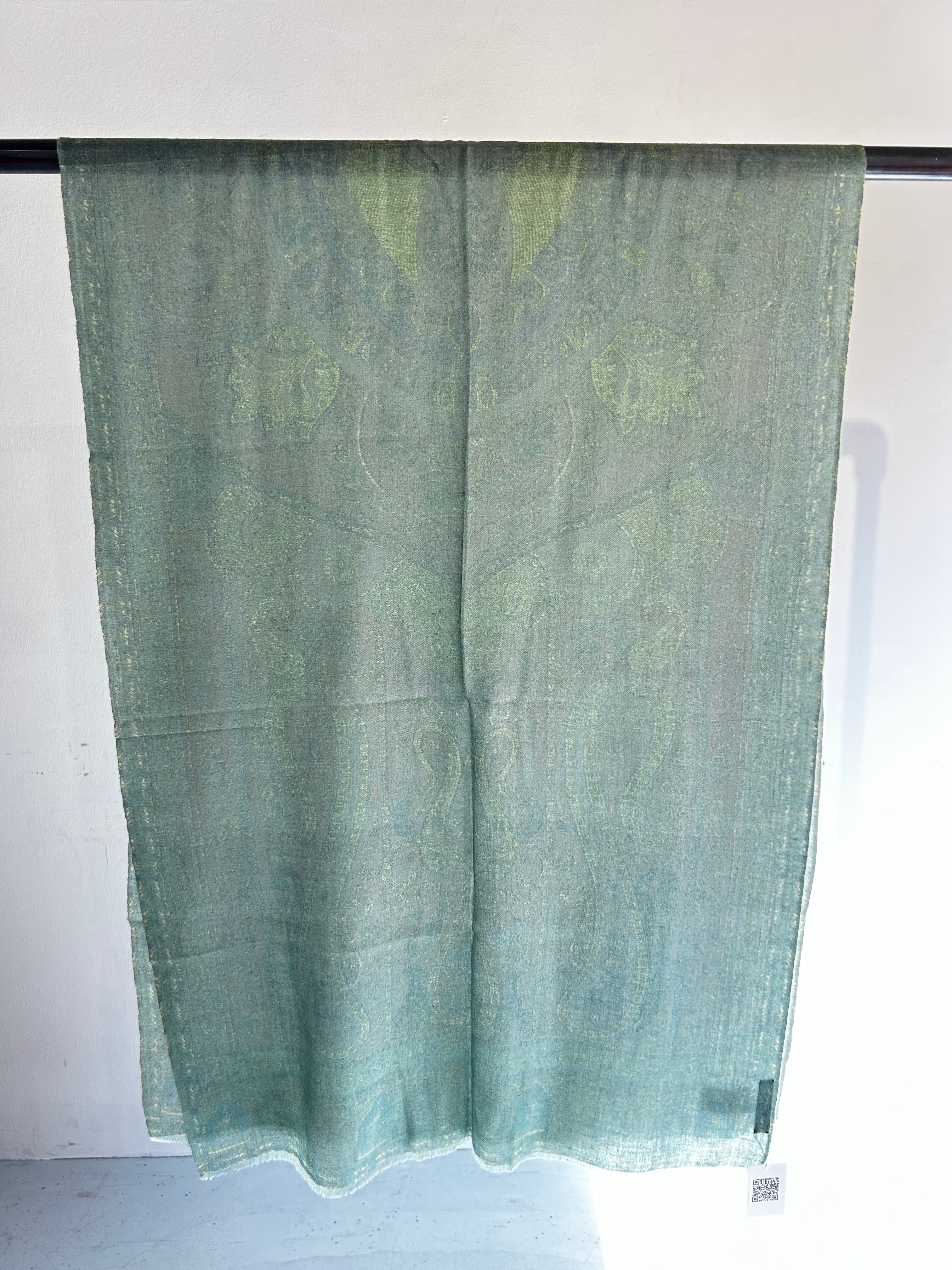 Okazaki - オカザキ/エメラルドグリーン カシミヤ100%プリントストール 幅70cm×縦200cm
