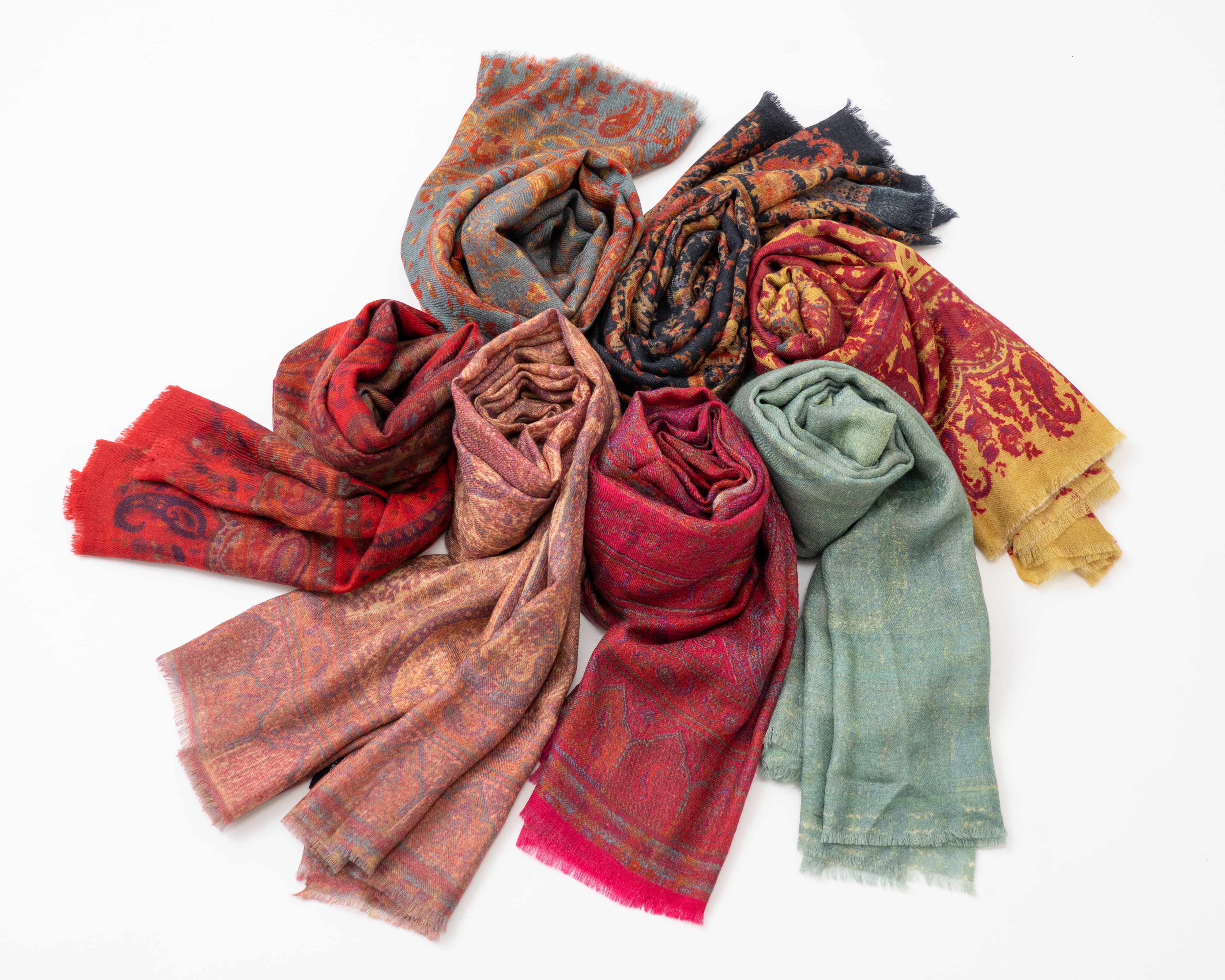 カシミールの自然とインドの色彩、そして都会的な洗練が融合した、新しいラグジュアリーストールの世界観。エスニックな色彩がもつ異国情緒に、現代的で洗練されたスタイリングを融合。羽織るだけで、日常を旅するような解放感と、ラグジュアリーな余韻をもたらします。