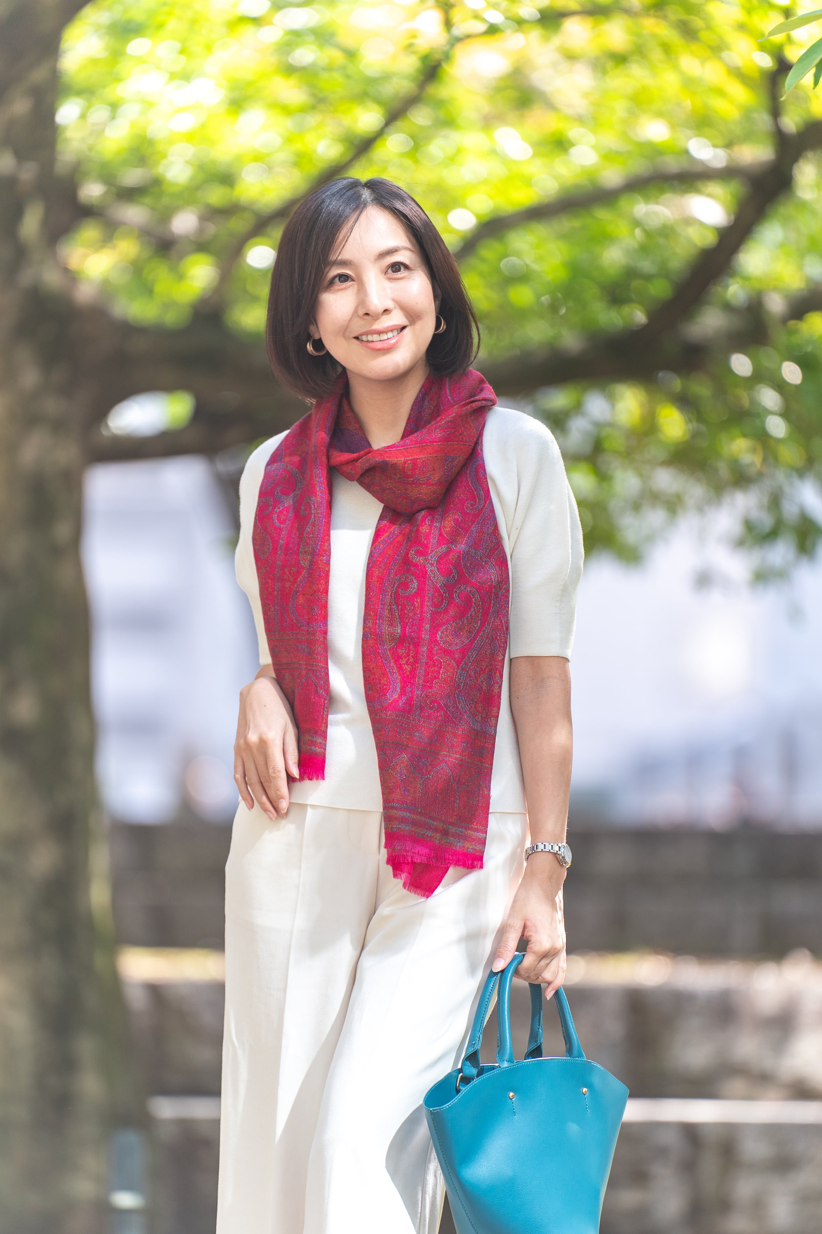 ※深みのあるレッドは、クラシックでありながらモダン。シンプルな装いに加えるだけで、一気にエレガントな印象に。