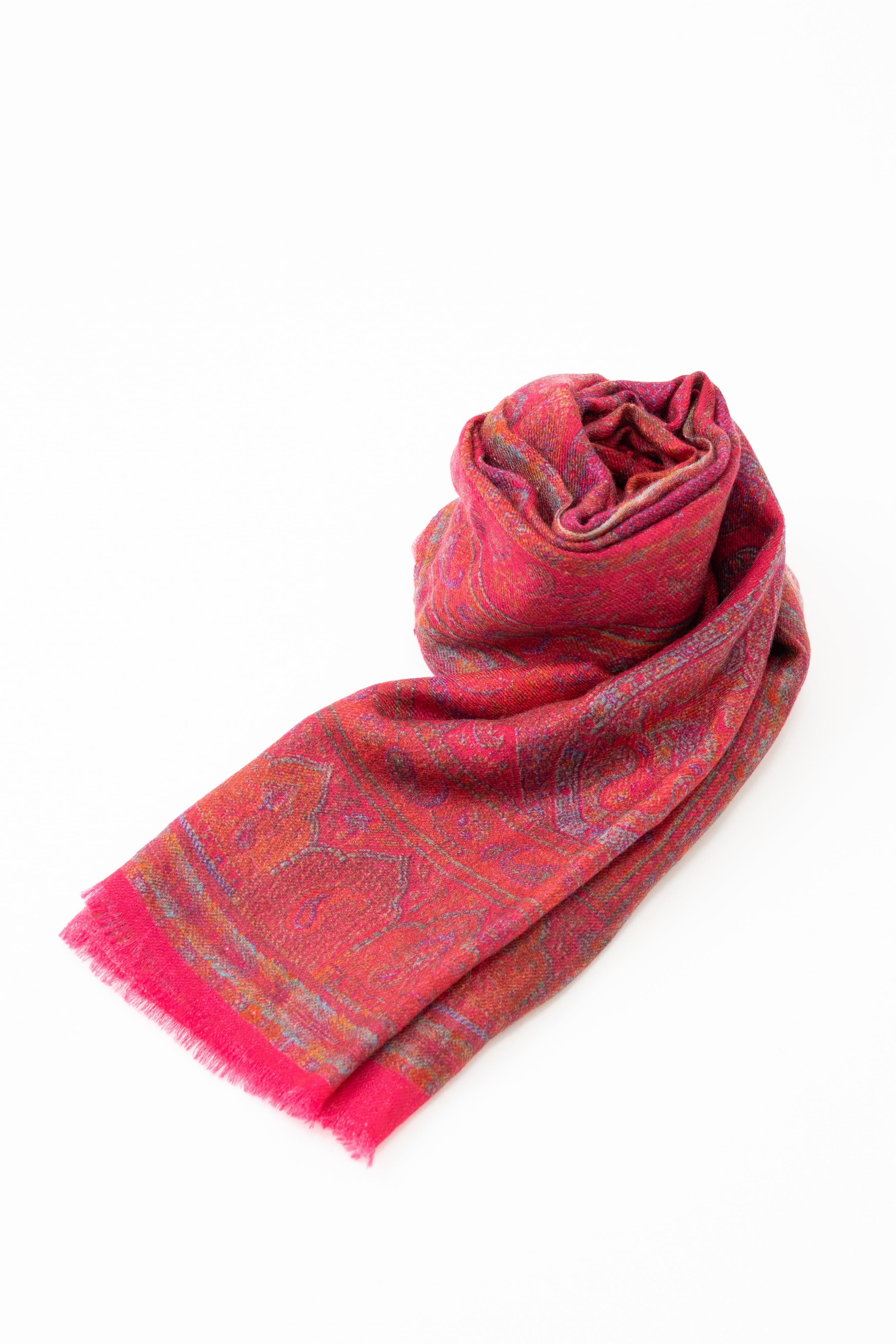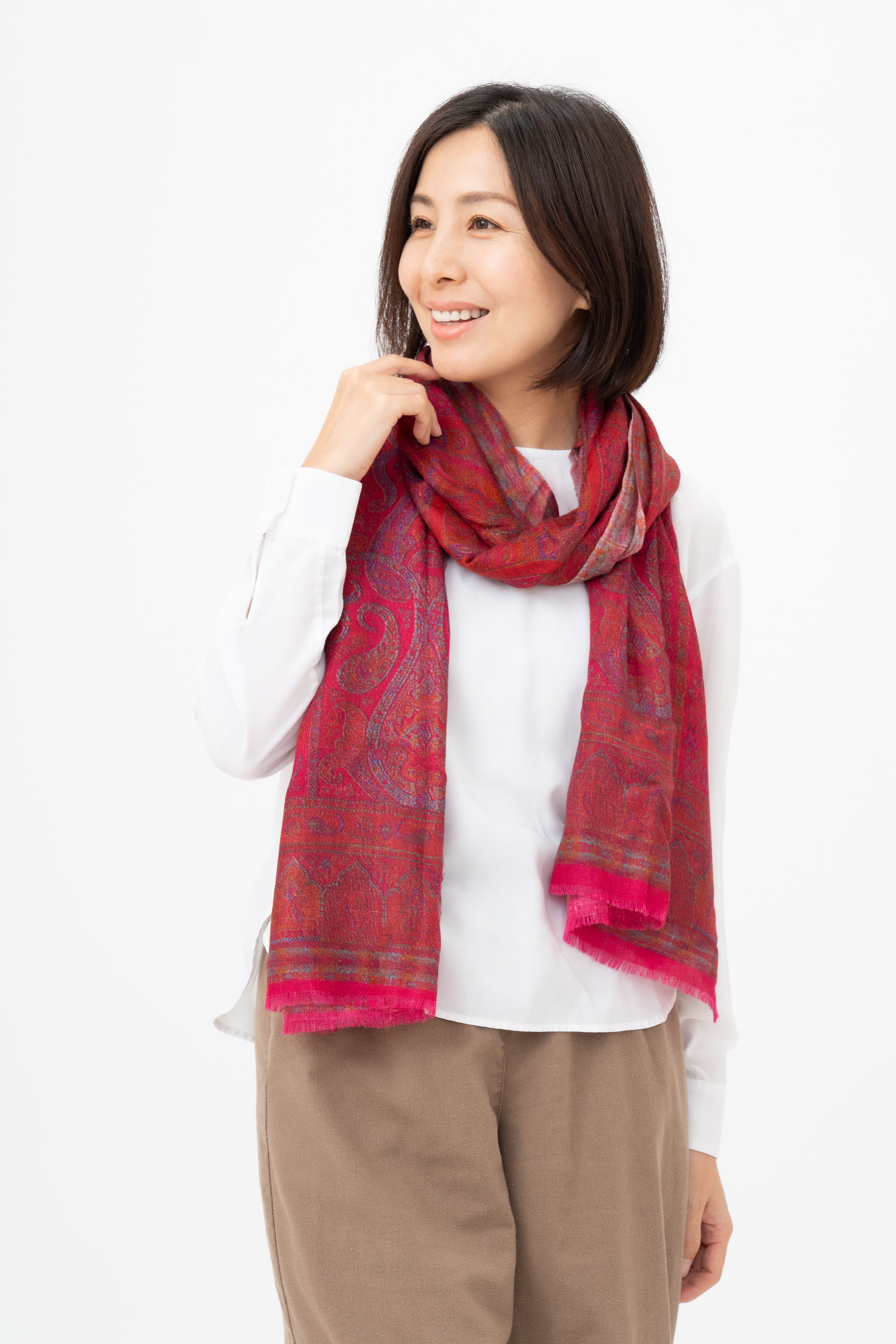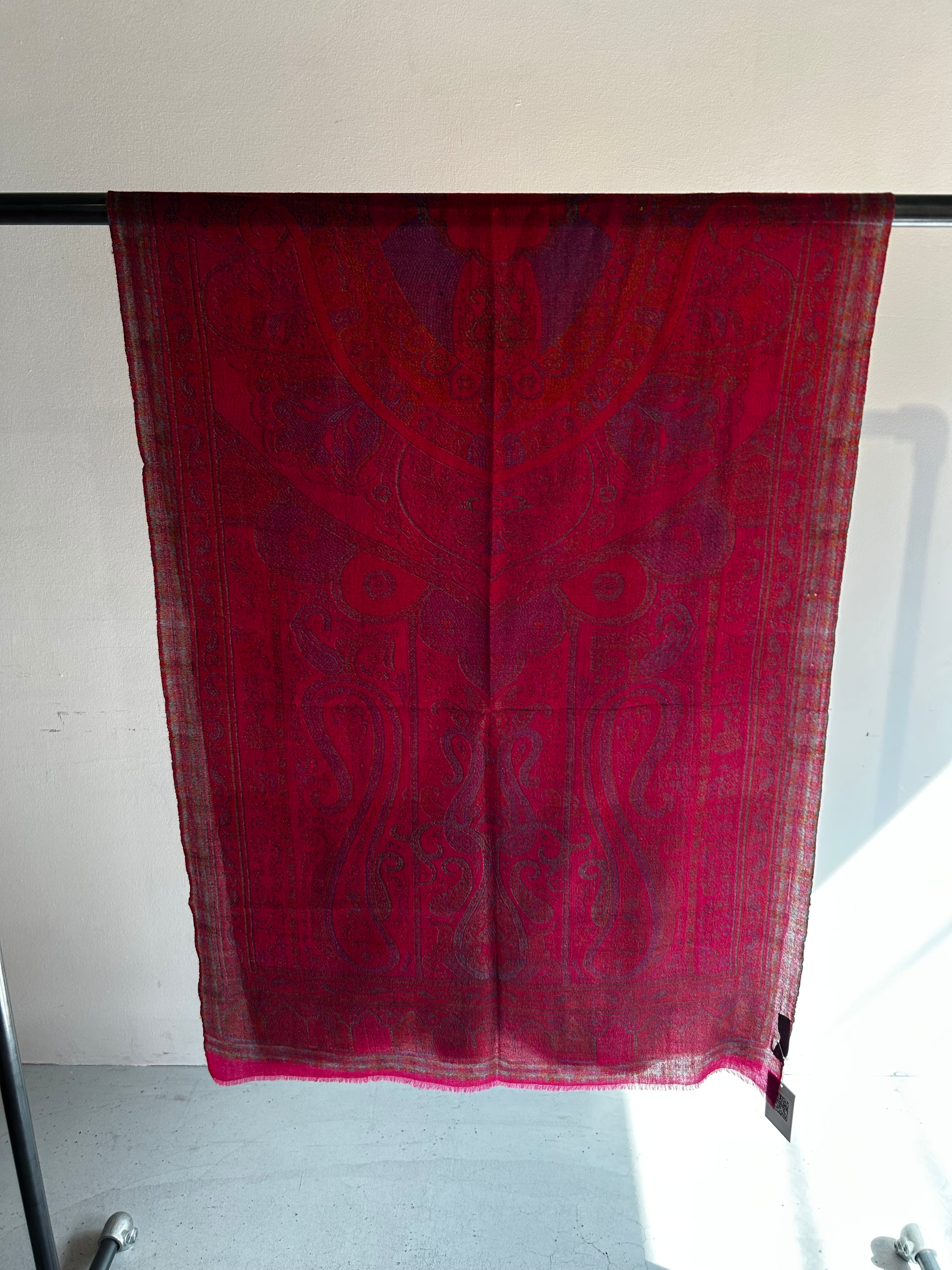 Okazaki - オカザキ/ルビーレッド カシミヤ100%プリントストール 幅70cm×縦200cm