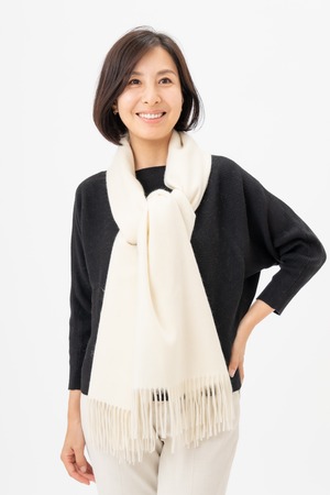 基本的に白色以外のストールも毛の付着はいたしますが、黒色(白色が目立つ色)のコートと合わせる場合は特にご留意ください。ご着用前に軽く毛ならしをしていただくと、より美しくお使いいただけます。