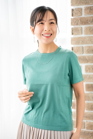 薄雲のように、軽やかでやわらかな陰影を纏うカシミヤシルクの通年半袖セーターです。シルクカシミヤ混の高級素材を使用し、柔らかなカラーを展開。シルクのなめらかな落ち感と、カシミヤのやわらかな温もりを掛け合わせ、春先から初夏、冷房の効いた室内まで長く活躍する一枚に仕上げました。