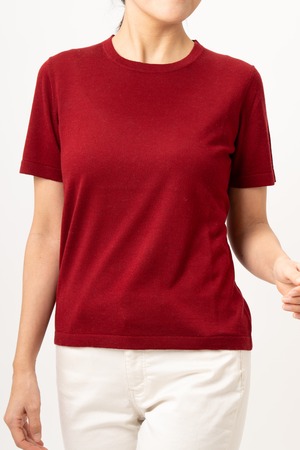 Usugumo - 薄雲/ボルドーワイン (通年セーター/半袖) シルク85%/カシミヤ15%