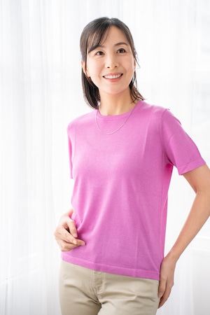 薄雲のように、軽やかでやわらかな陰影を纏うカシミヤシルクの通年半袖セーターです。シルクカシミヤ混の高級素材を使用し、柔らかなカラーを展開。シルクのなめらかな落ち感と、カシミヤのやわらかな温もりを掛け合わせ、春先から初夏、冷房の効いた室内まで長く活躍する一枚に仕上げました。