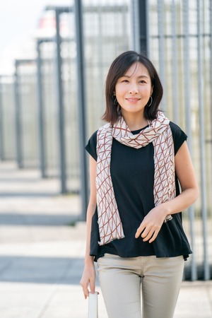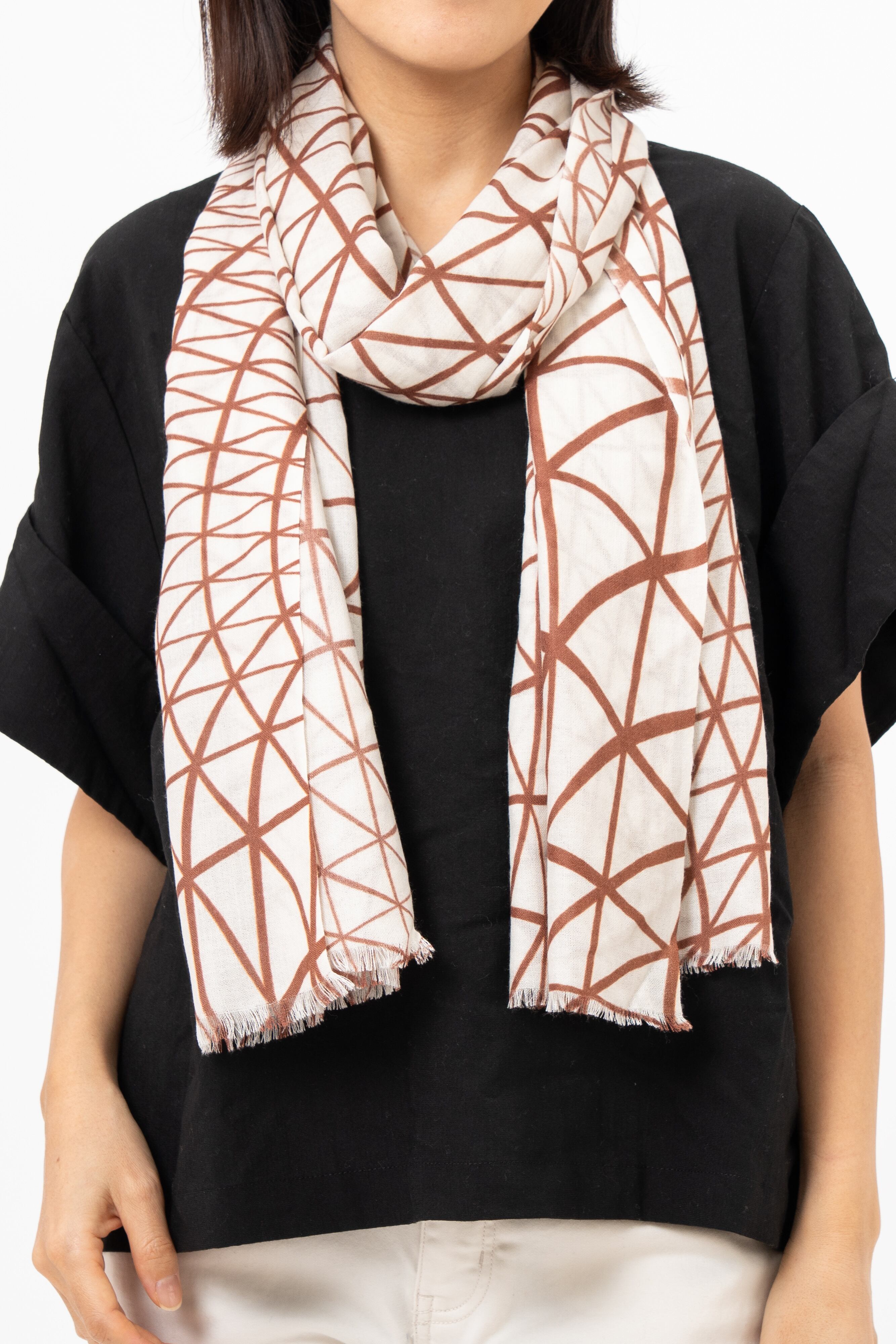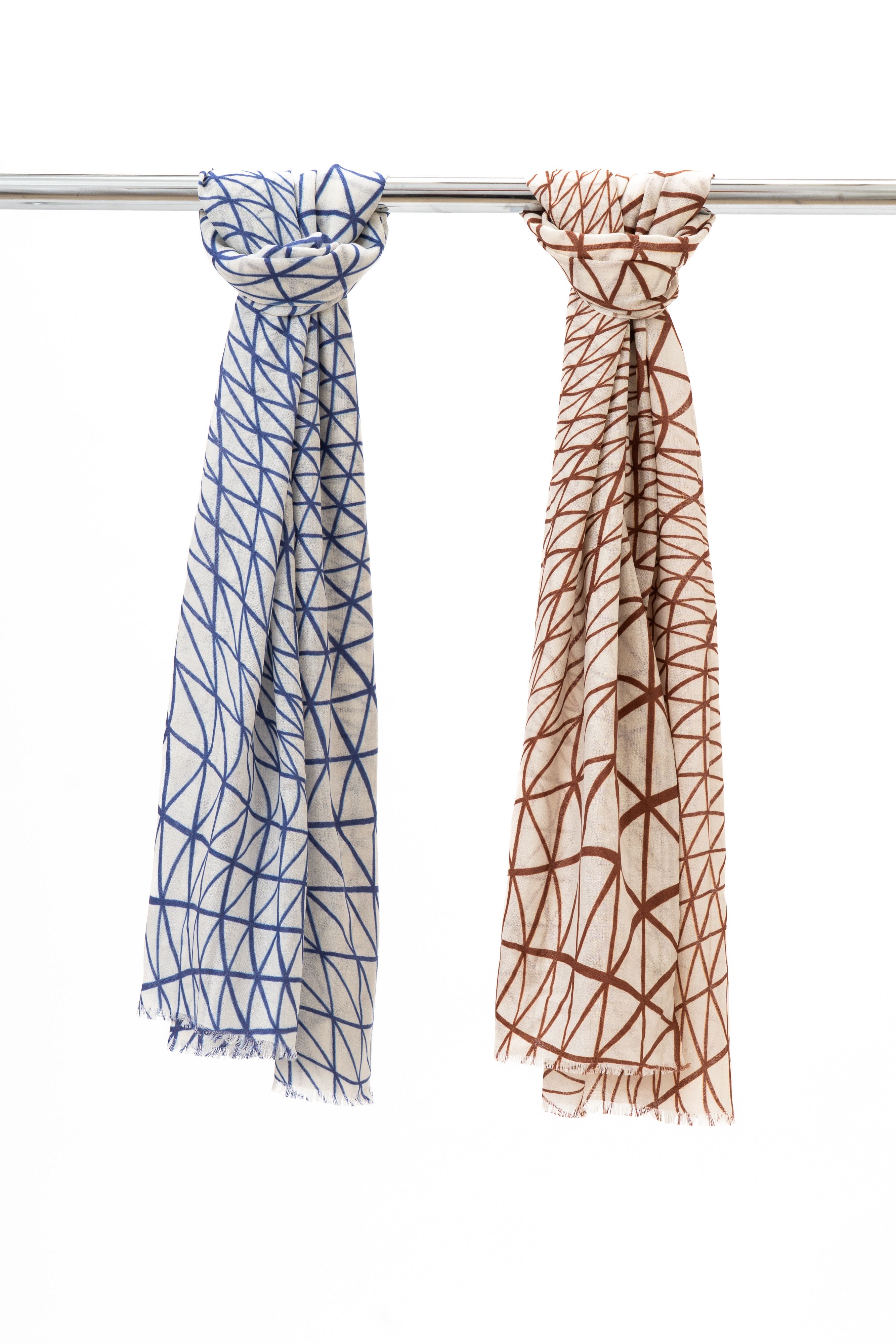 装いのアクセントとして、またUV・冷房対策としても活躍。薄く軽い素材なので、折りたたんでバッグに忍ばせておけます。変形水玉を、軽やかな配色でまとめた一枚。さりげなく襟元に華を添えます。