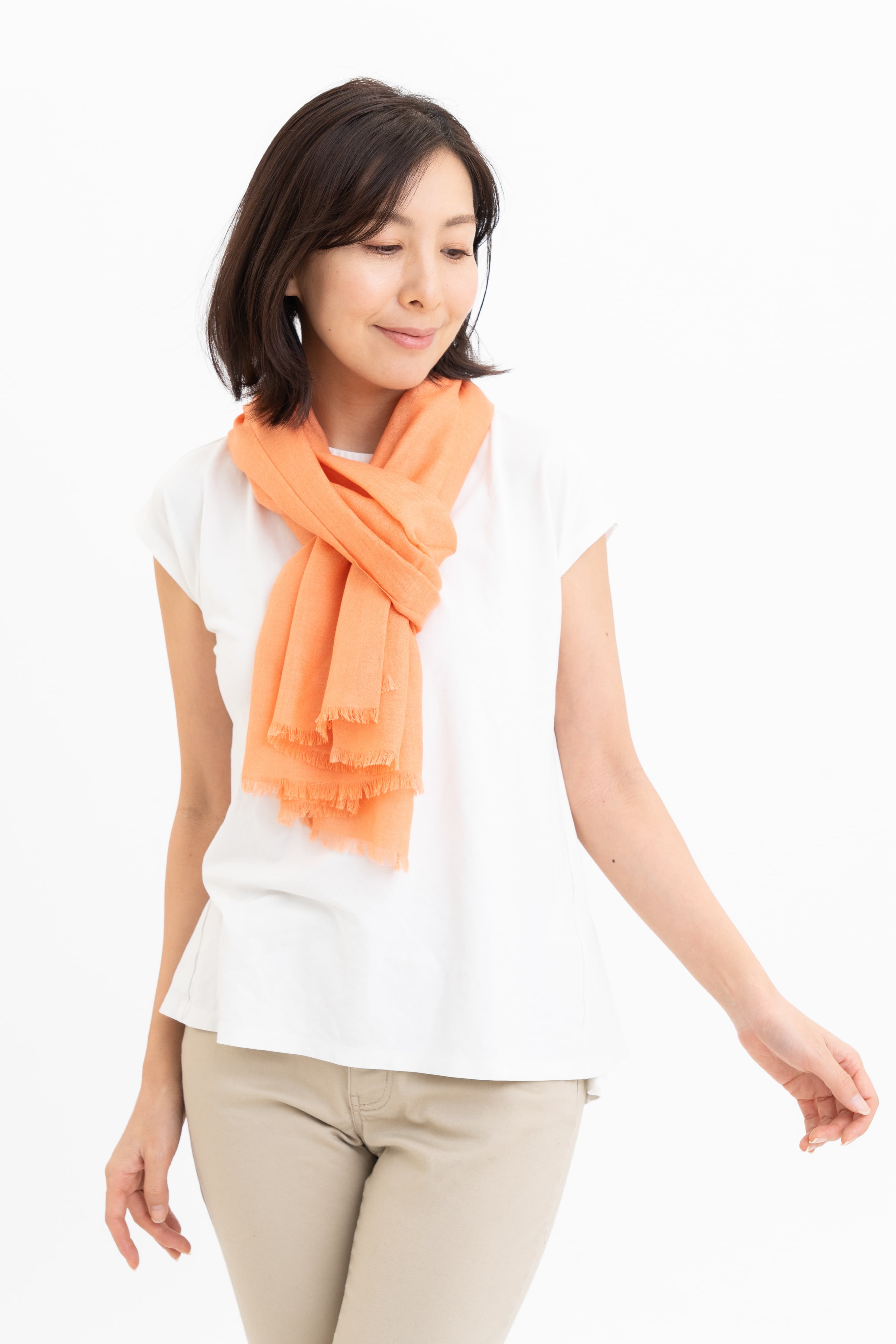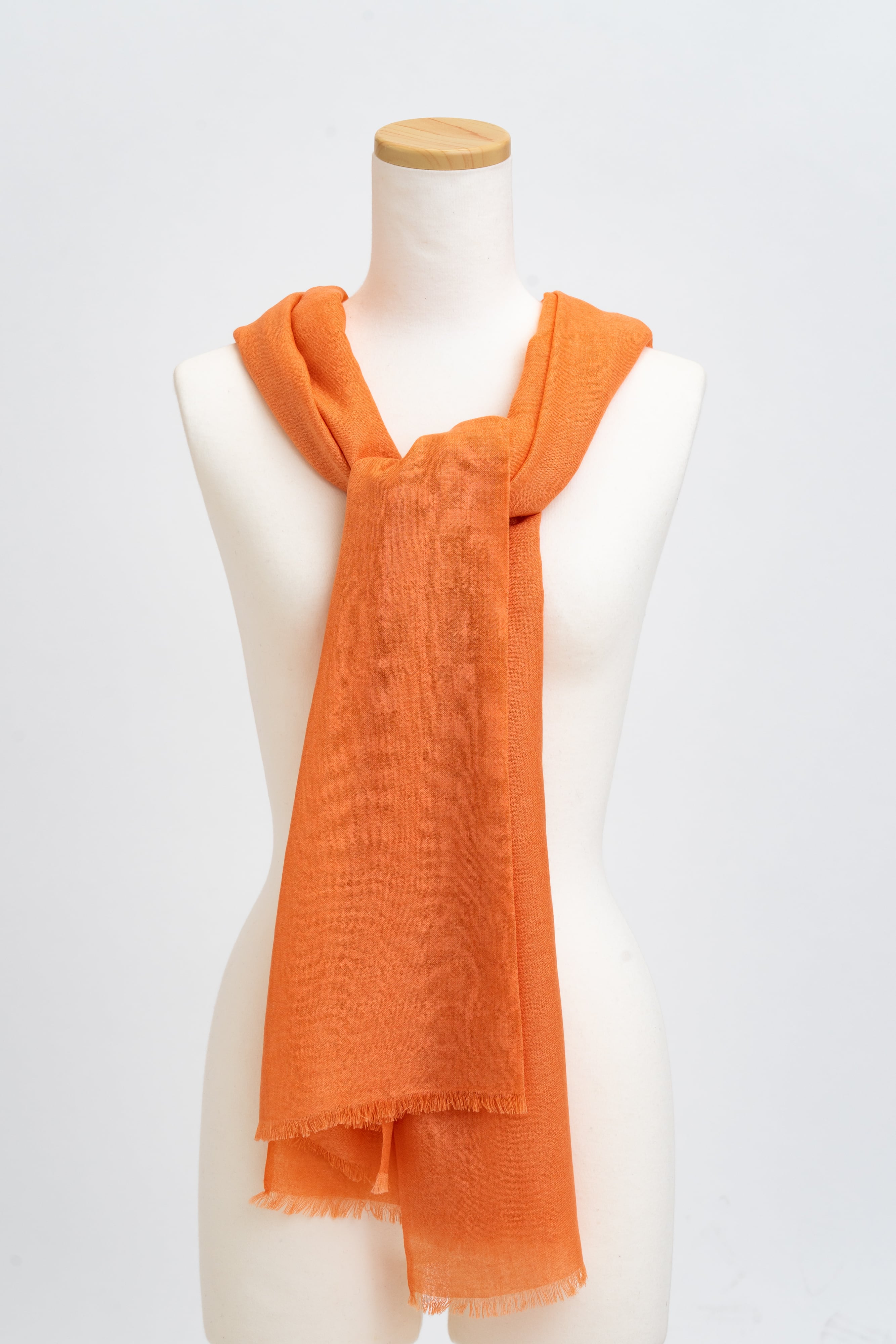 Kinukake - キヌカケ/オレンジ カシミヤ50%シルク50%ストール 幅65cm×縦180cm(本体部分)+1cm×2(房部分)