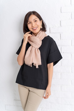 Kinukake - キヌカケ/ベージュ カシミヤ50%シルク50%ストール 幅65cm×縦180cm(本体部分)+1cm×2(房部分)